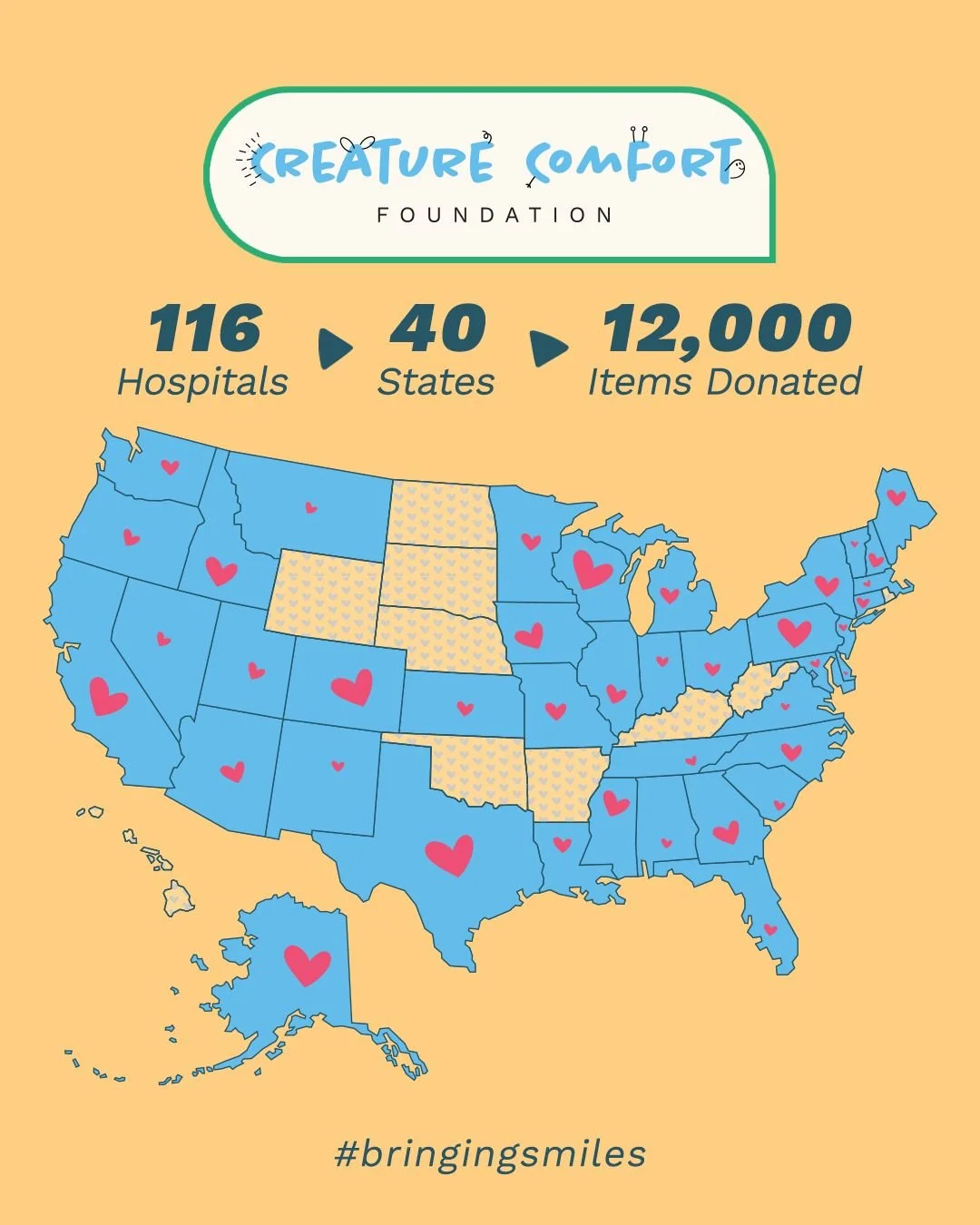 Thank you for being part of the Creature Comfort community and helping us bring smiles to hospital rooms nationwide.